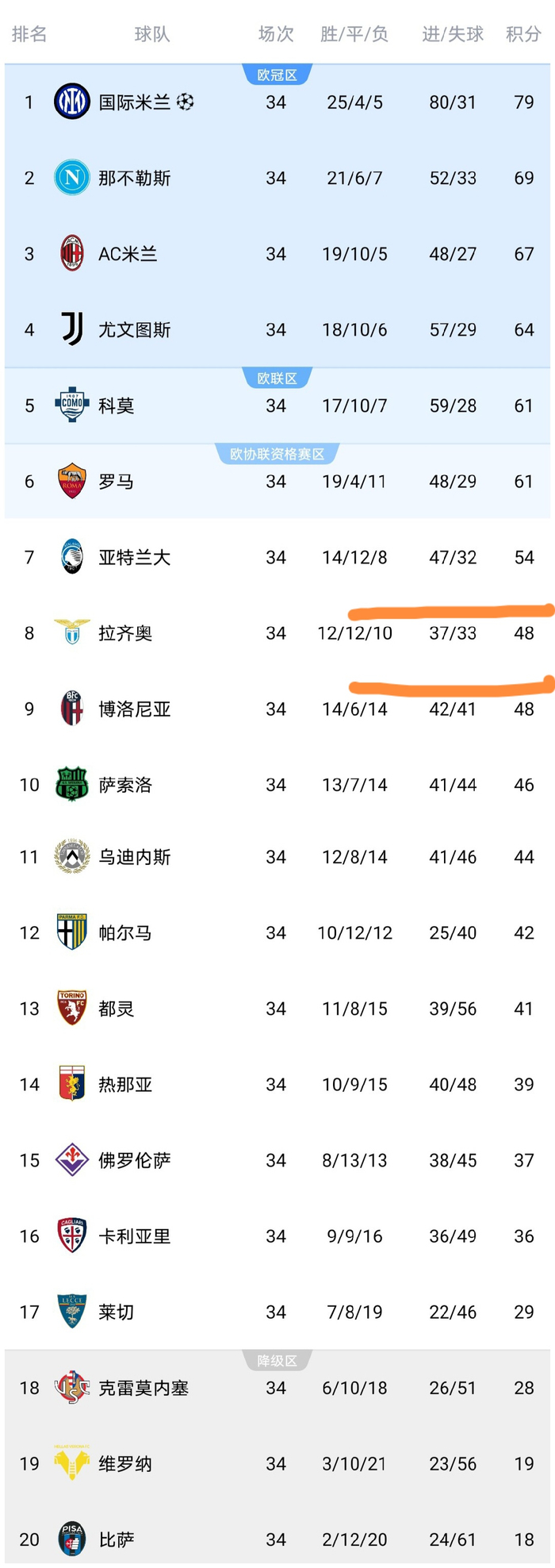 随着拉齐奥3-3,亚特兰大爆大冷门2-3,意甲最新积分榜出炉